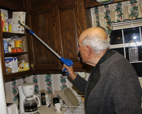 Try to keep products that you use frequently near waist level to prevent losing your balance when reaching up or bending down. When you do need to get something at a high level or on the floor, a reaching device makes life easier and safer.