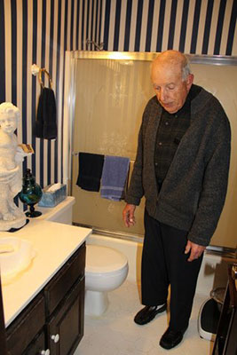 Bathrooms are especially hazardous since there may be moisture on the floor from the sink or shower. Make sure to keep the bathroom well lit, and keep your focus on the floor to avoid wet areas.